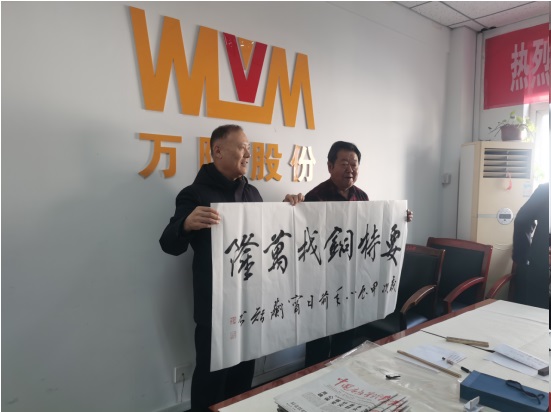 煙臺萬隆真空冶金股份有限公司董事長王風德、總經(jīng)理陸明峰,副總經(jīng)理李宗廣熱情接待了中國書畫藝術促進會煙臺分會付主席兼秘書長曹大溪,中國書協(xié)、中國美協(xié)會員、山東省書協(xié)顧問、煙臺市書協(xié)名譽主席、中國書畫藝術促進會煙臺分會執(zhí)行主席寧蘭智,中國書協(xié)會員、山東省書協(xié)理事、篆刻委員會付主任、煙臺市書協(xié)主席姜玉松,中國書協(xié)會員、煙臺市書協(xié)付主席、高新區(qū)書協(xié)主席趙向森,中國書協(xié)會員、山東省書協(xié)理事、煙臺市書協(xié)付主席宮慶全,中國書協(xié)會員、山東省書協(xié)理事、煙臺市書協(xié)付主席兼秘書長孫秀杰。他們現(xiàn)場揮毫潑墨,展示了精湛的書法技藝,讓企業(yè)員工近距離感受到了書法藝術的魅力。